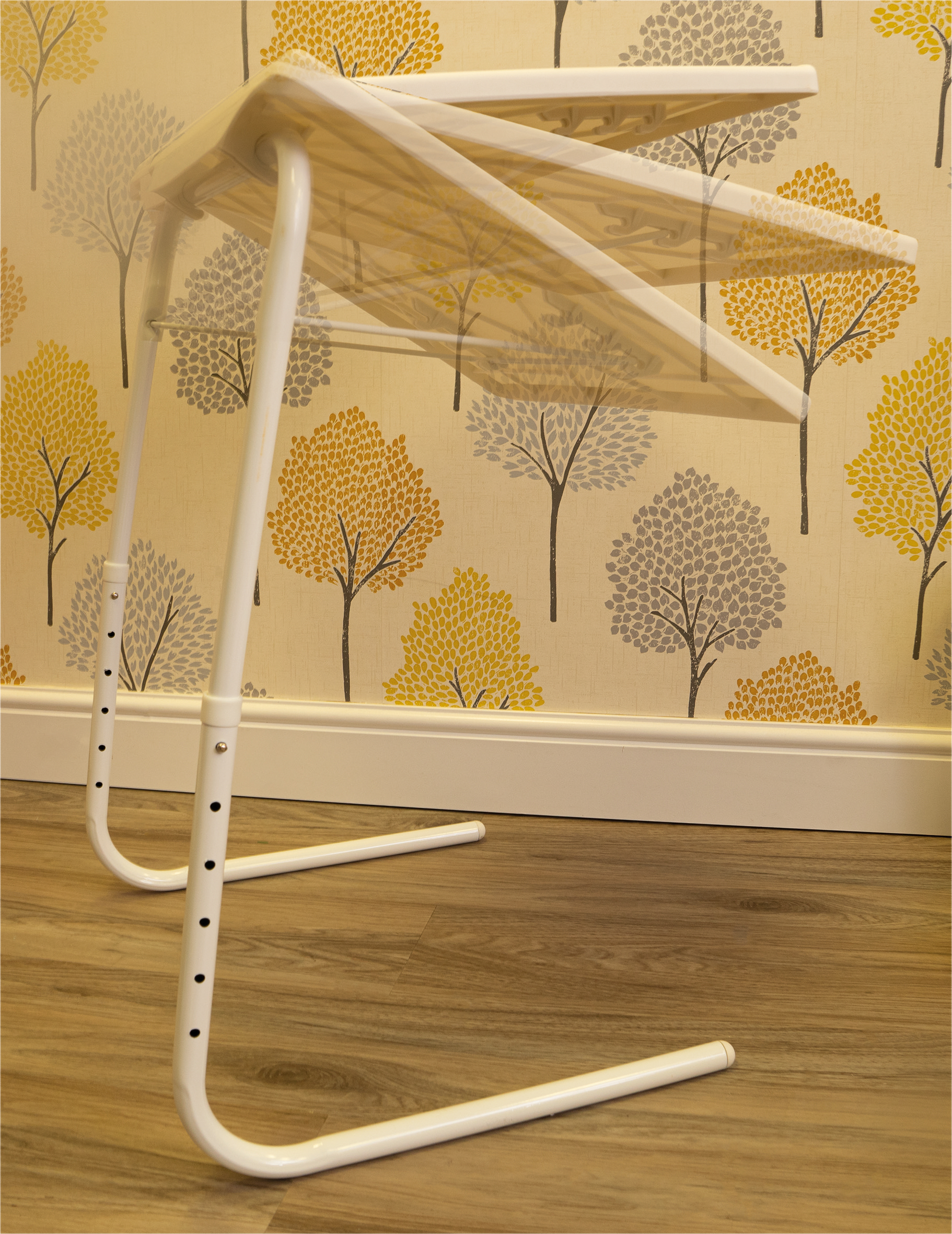De Aidapt bedtafel is niet alleen functioneel, maar ook stijlvol met zijn witte afwerking. Dankzij het inklapbare ontwerp kun je de tafel gemakkelijk opbergen wanneer je hem niet gebruikt. Het lichte gewicht maakt het verplaatsen van de tafel eenvoudig, zodat je hem overal in huis kunt gebruiken waar dat nodig is.
