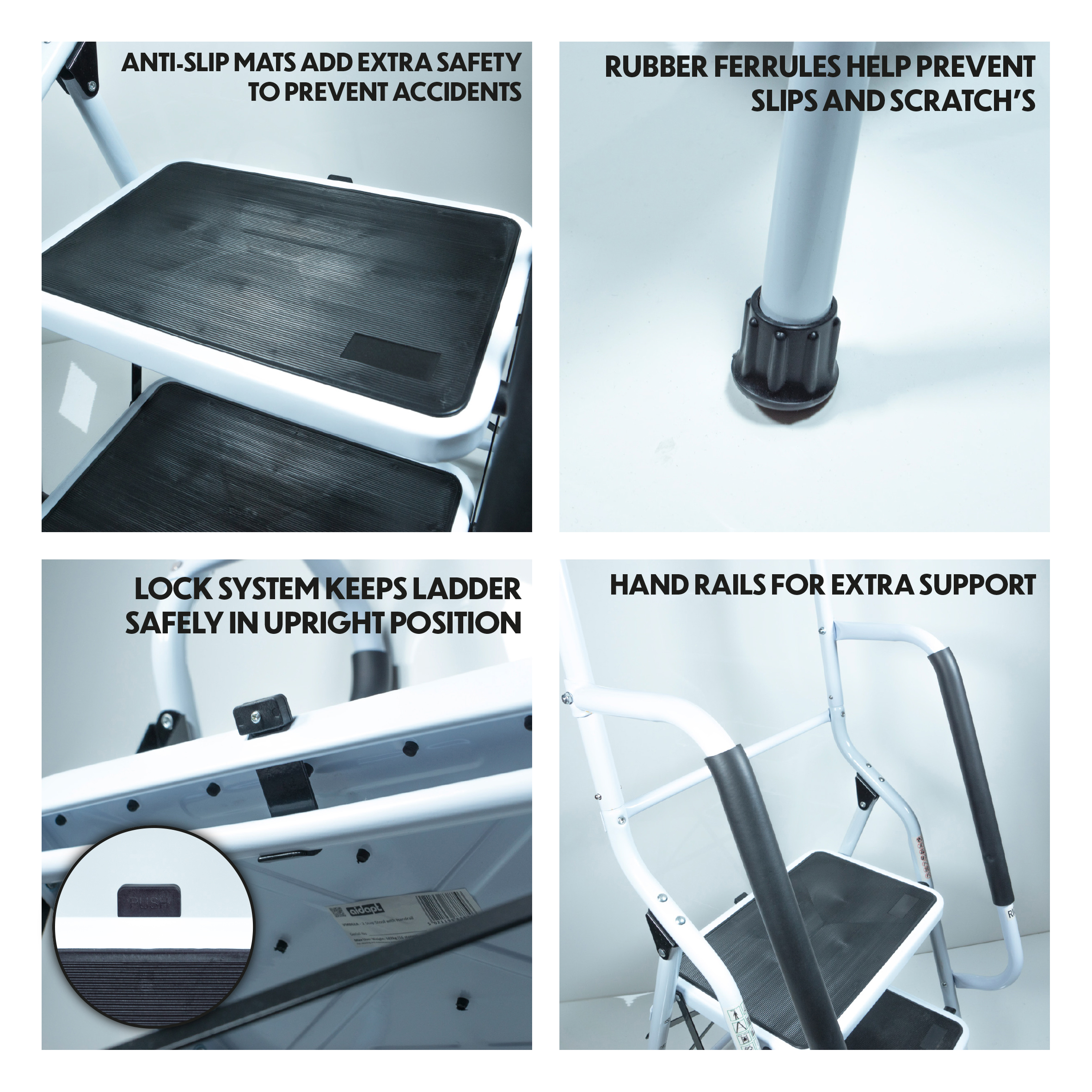 De Aidapt keukentrap is speciaal ontworpen voor ouderen die een veilige en stabiele opstap nodig hebben. Deze veelzijdige opstapkruk kan zowel binnen als buiten worden gebruikt, ideaal voor schoonmaken, huisrenovaties en doe-het-zelf-klussen. Het opvouwbare ontwerp maakt het eenvoudig om de trap op te bergen, zelfs in kleine ruimtes.