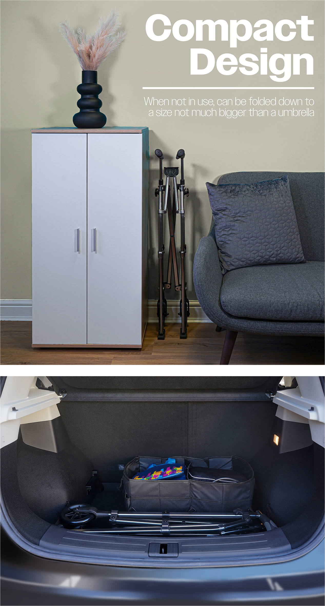 Met vijf verstelbare hoogtestanden kan het hulpmiddel worden aangepast aan de gebruiker. Bovendien is het eenvoudig opvouwbaar tot een compact formaat, waardoor het weinig ruimte inneemt in huis of tijdens vervoer.
