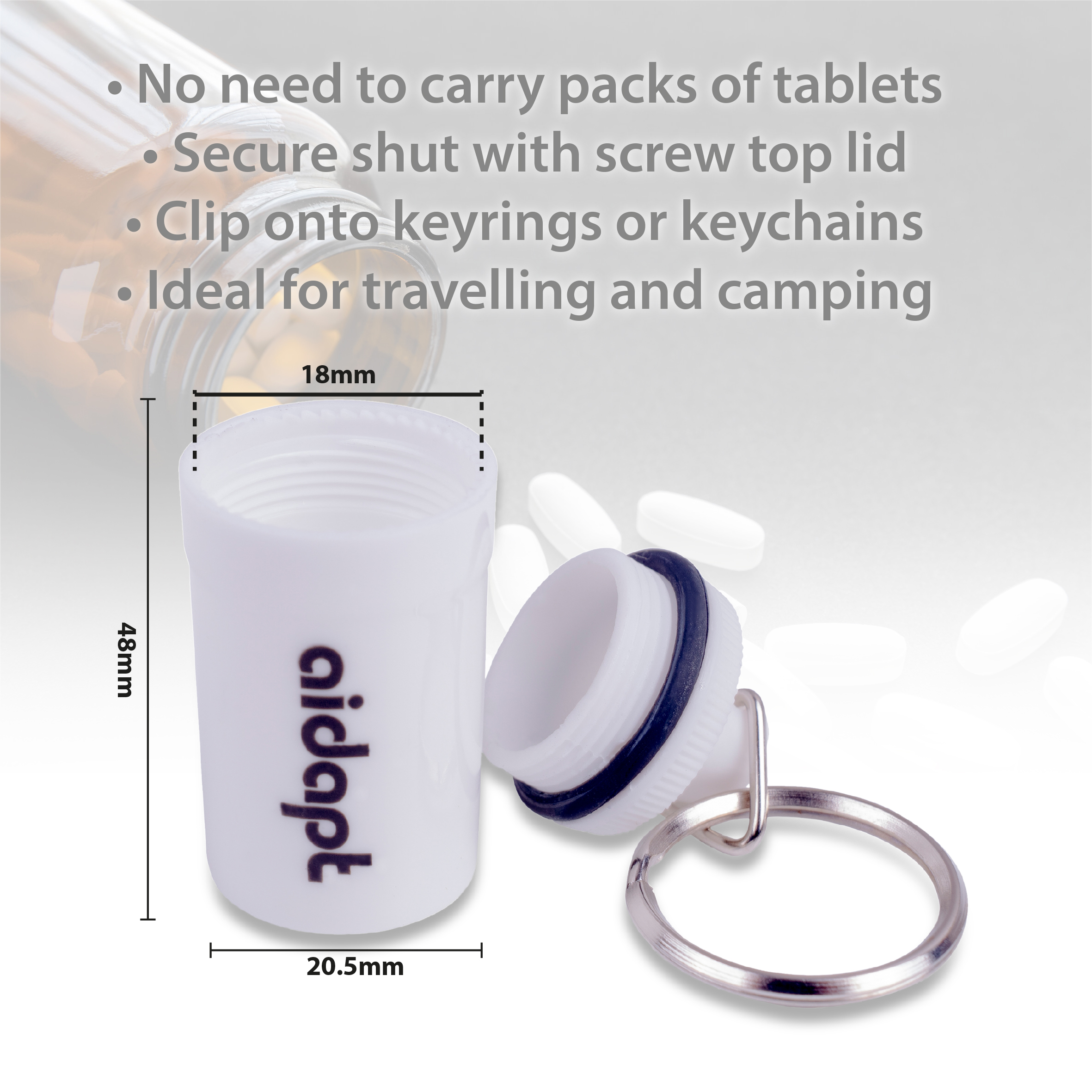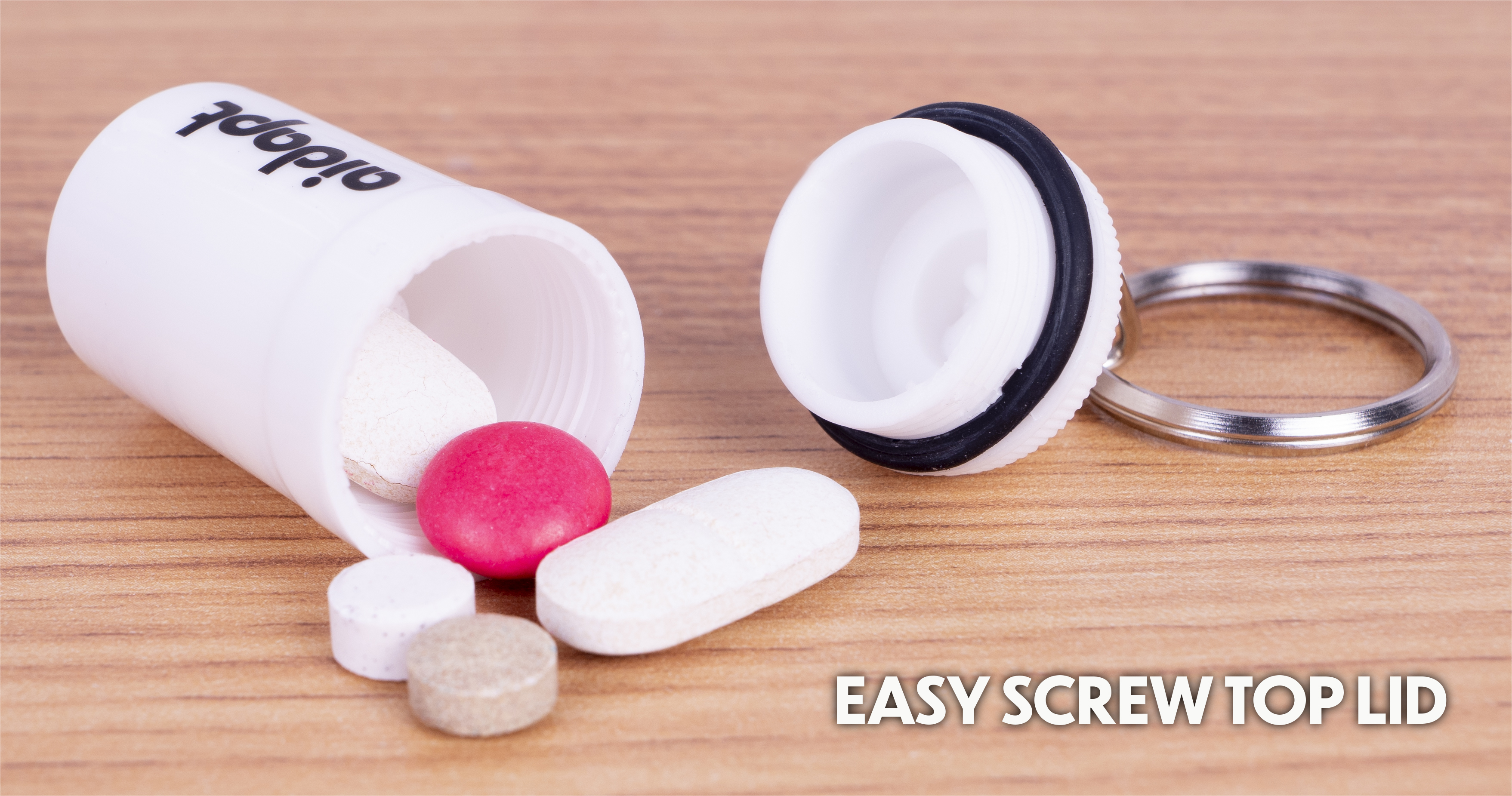 - Handige sleutelhanger voor persoonlijke pillenopslag.