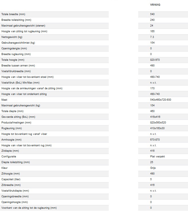 Productinformatie "Aidapt postoel grijs - hoogte verstelbaar"