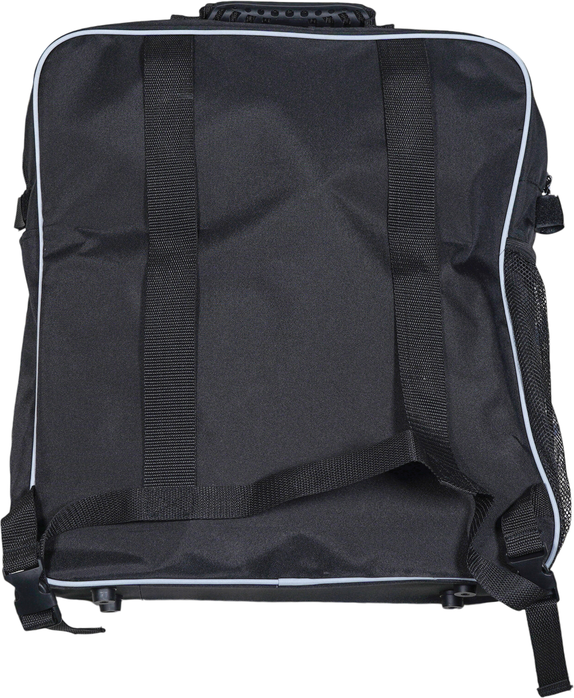 Aan de zijkanten vindt u extra opbergmogelijkheden: een netvak voor flessen of paraplu’s en een tweede zijvak voor een wandelstok of kruk, met een klittenbandsluiting die uw loophulpmiddel stevig op zijn plaats houdt. De stevige handgreep en verstelbare banden maken het dragen en bevestigen eenvoudig en comfortabel.