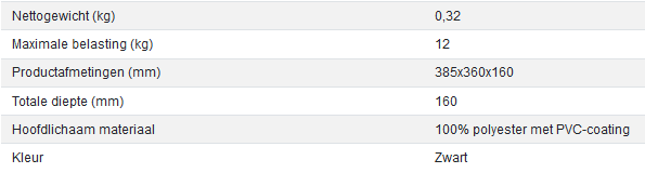 De tas is waterafstotend en daardoor geschikt voor diverse weersomstandigheden. Met de royale opbergruimte neemt u eenvoudig jassen, boodschappen, medicatie of snacks mee. Stevige handgrepen aan de voor- en achterkant maken het mogelijk de tas ook los van de rolstoel comfortabel te dragen. De tas heeft een maximale draagkracht van twaalf kilogram en blijft dankzij het duurzame ontwerp geschikt voor dagelijks gebruik.