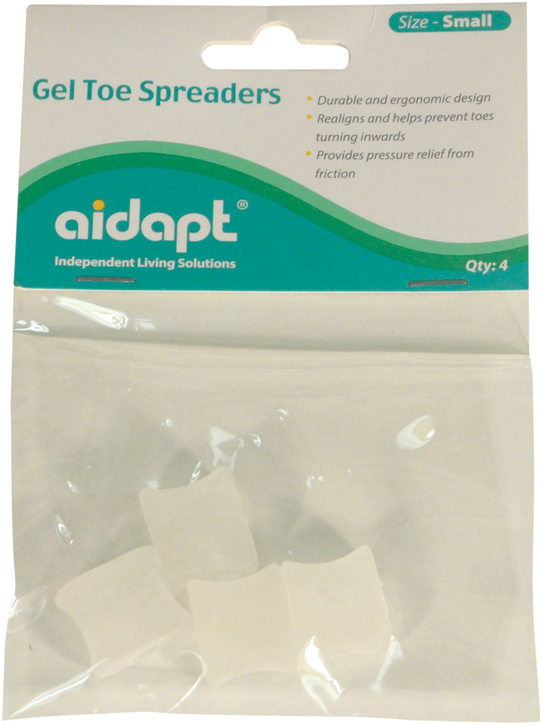 Deze gel teenspreiders zijn een eenvoudige oplossing voor veelvoorkomende teenproblemen. Ze herschikken je tenen op een comfortabele manier, waardoor je direct verlichting voelt. Met de verpakking van vier stuks heb je altijd een reserve bij de hand, zodat je nooit zonder hoeft te zitten. Maak je leven een stukje aangenamer met Aidapt!