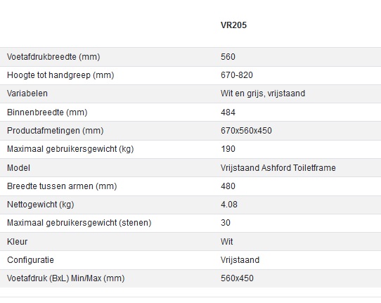 Model: vrijstaand Ashford Toilet Frame