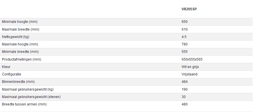Maximale belasting: 190 kg.