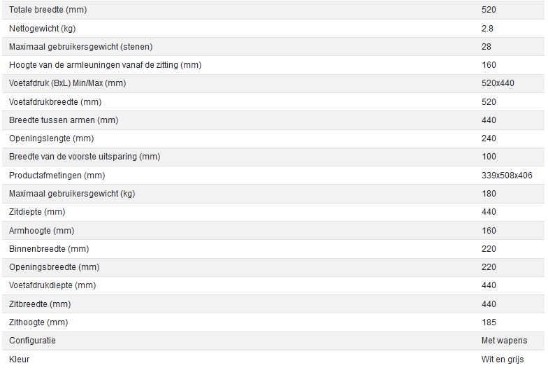 | Toiletverhoger verstelbaar in breedte: | Nee niet verstelbaar in breedte |