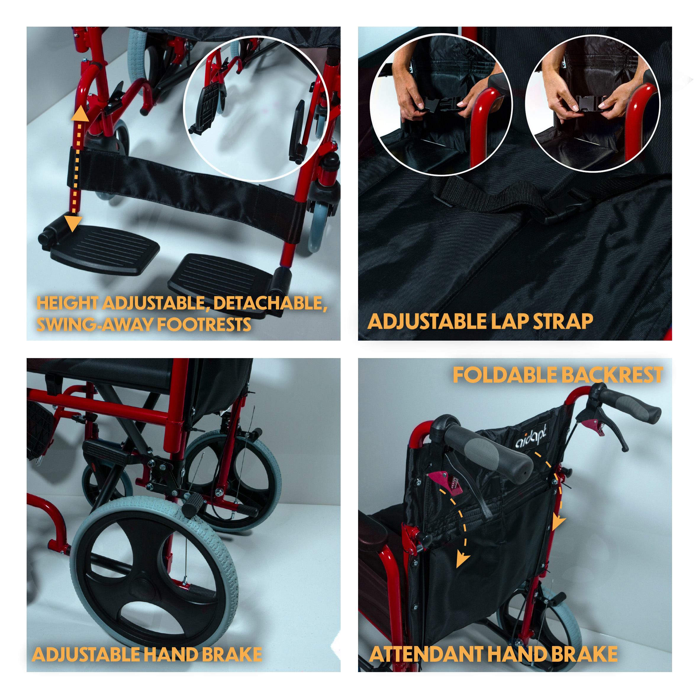 Productinformatie "Aidapt transport rolstoel opvouwbaar 8.5kg - rood"