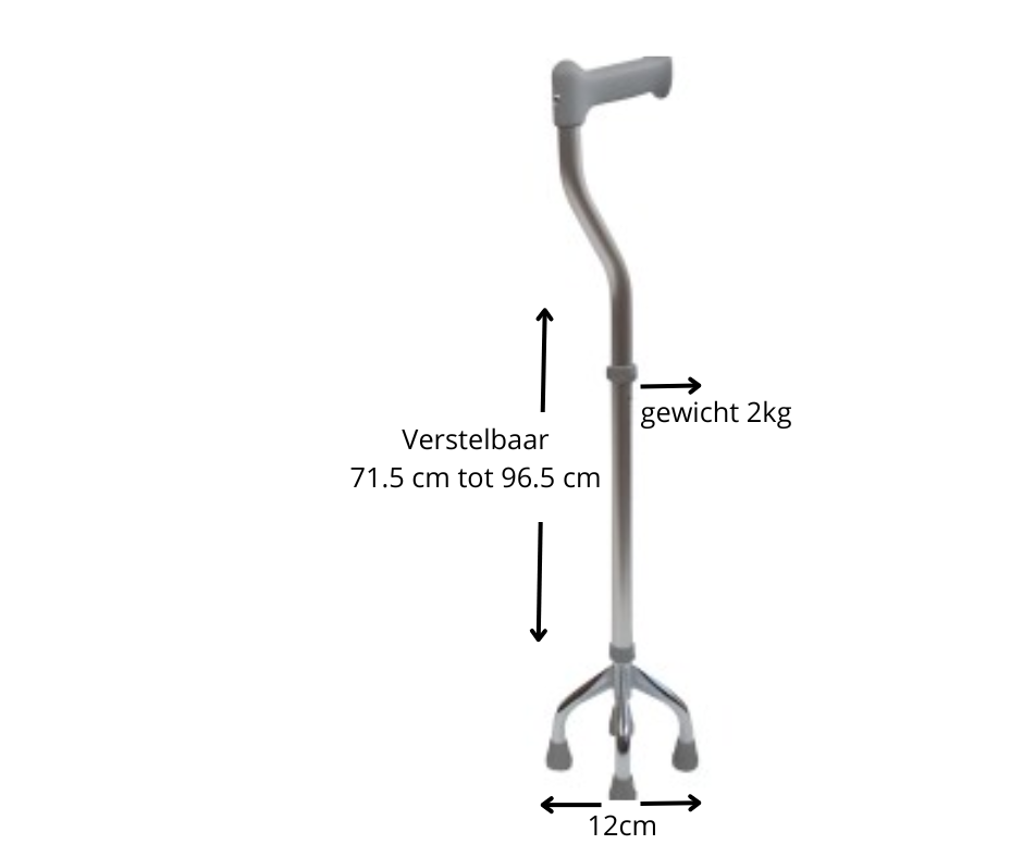 Vierpoots wandelstok met brede voet voor extra stabiliteit