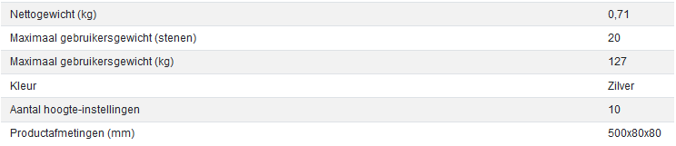In hoogte verstelbaar van 71,5 tot 96,5 cm (10 standen)