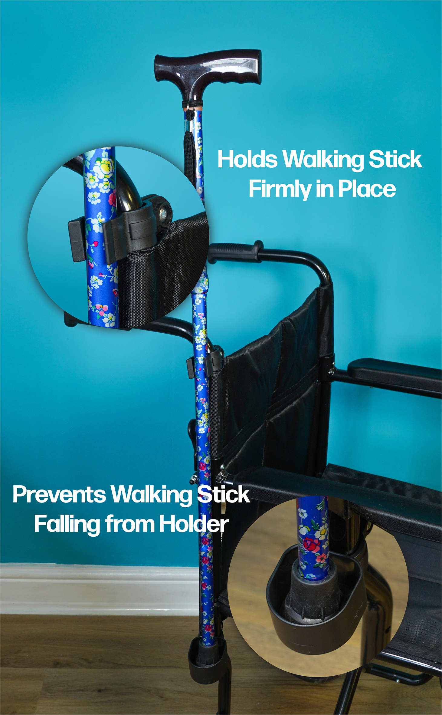 Met deze wandelstokhouder houd je je wandelstok of kruk altijd binnen handbereik. De houder zorgt ervoor dat je loophulpmiddel stevig vastzit, zonder dat je er constant op hoeft te letten. Dit betekent meer vrijheid en minder stress tijdens het wandelen of bewegen.