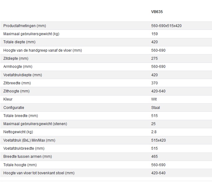 | Gebruikersgewicht douchekruk: | 160kg, 170kg, 180kg, 190kg, 200kg |