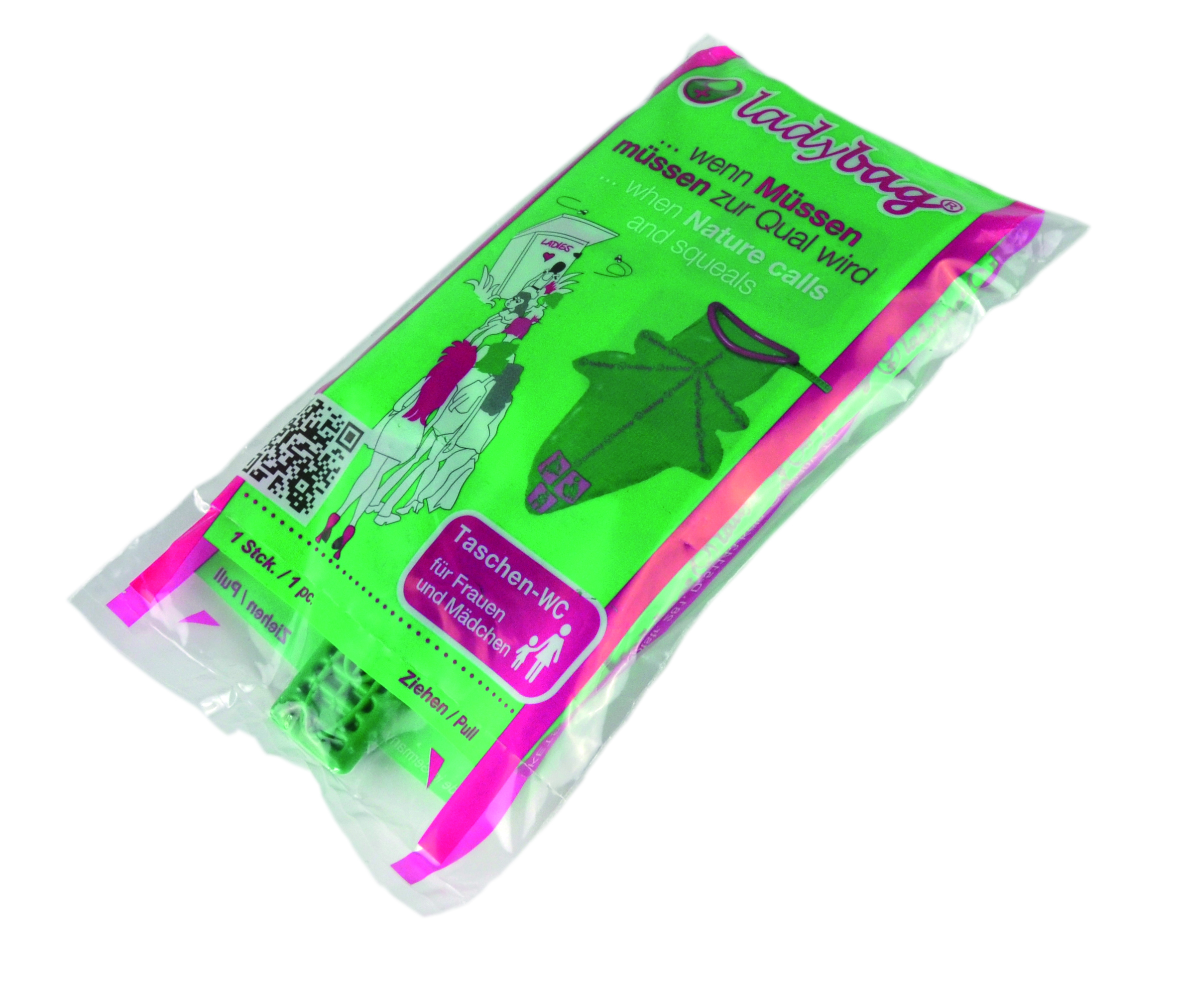 De Ladybag is een discreet en hygiënisch draagbaar urinaal voor vrouwen, ontworpen voor situaties waarin geen toilet beschikbaar is. Dit maakt het product geschikt voor autoritten, reizen, festivals, kamperen of medische noodsituaties. De urine wordt opgevangen in een speciale zak met absorberend materiaal, waardoor morsen en geurtjes worden voorkomen.