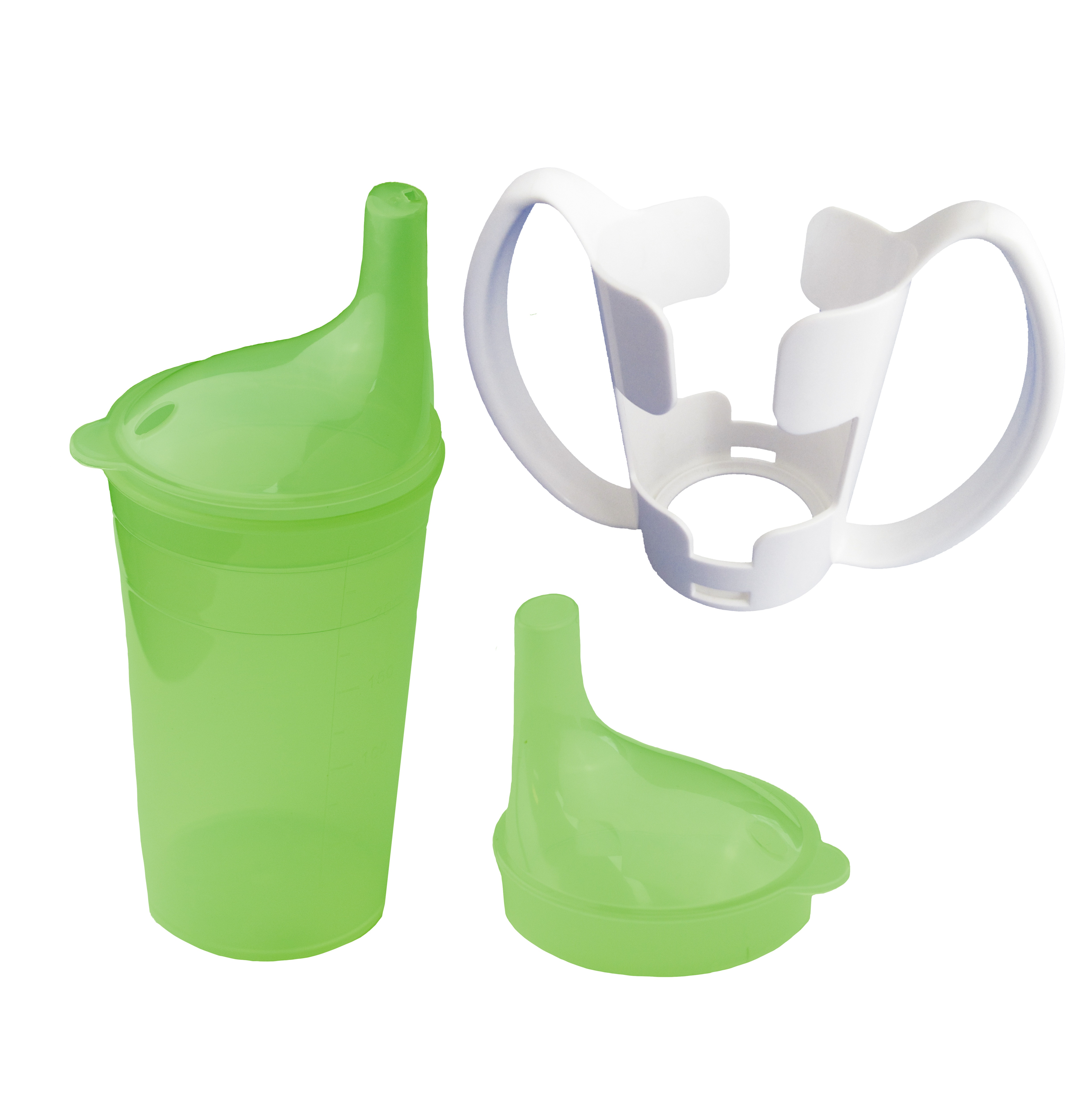 Door het functionele ontwerp helpt deze drinkbekerset de zelfstandigheid van de gebruiker te vergroten.