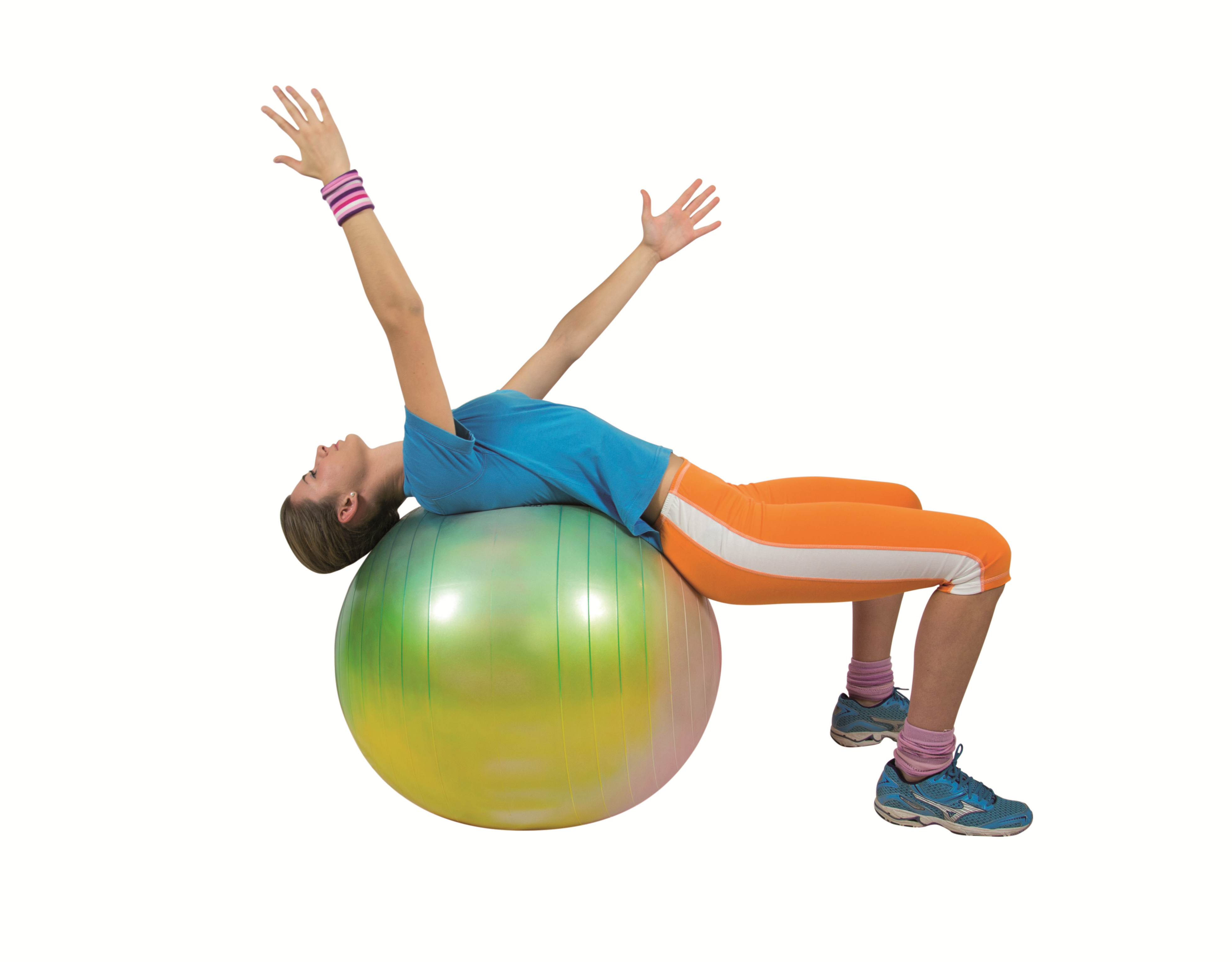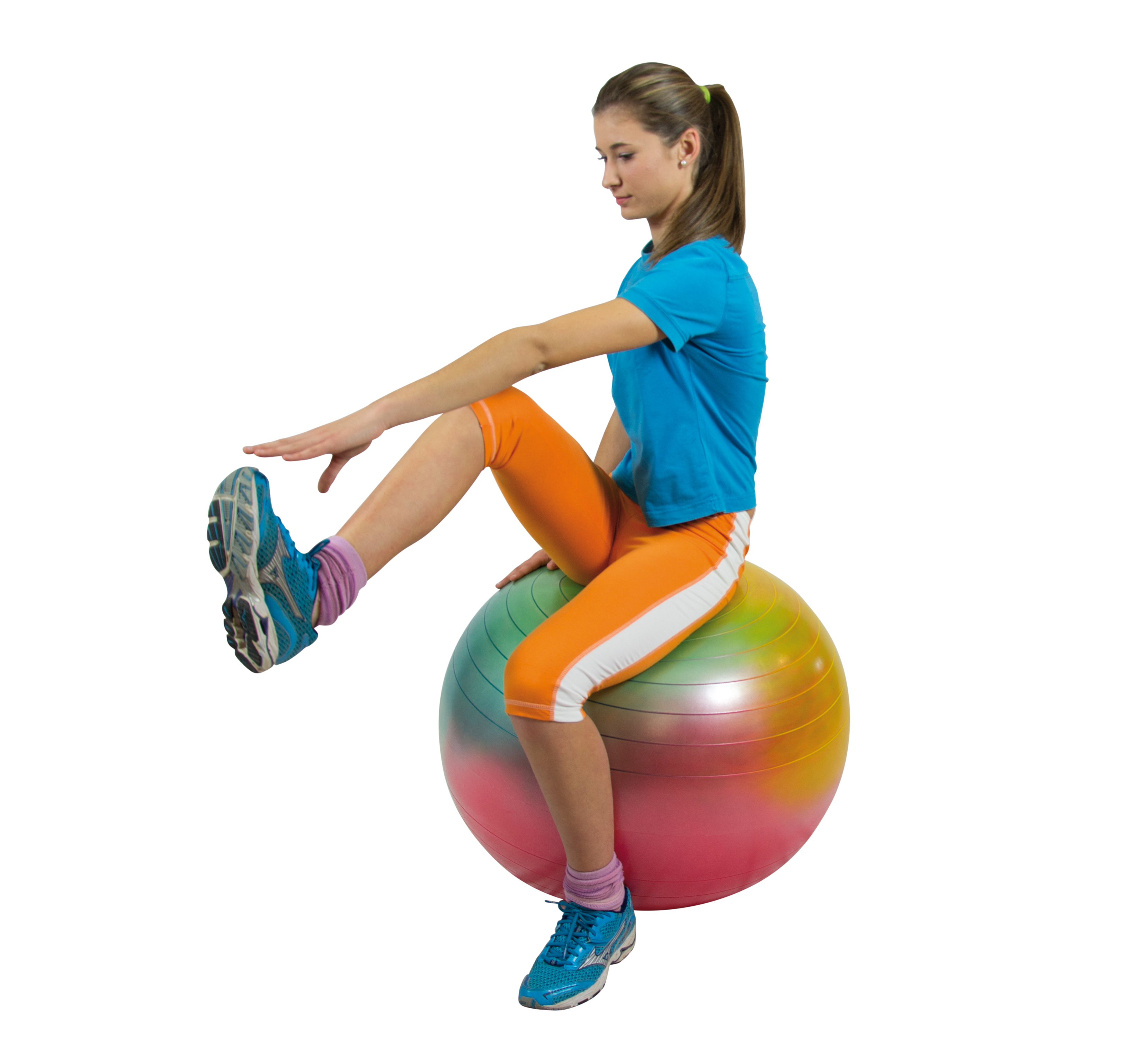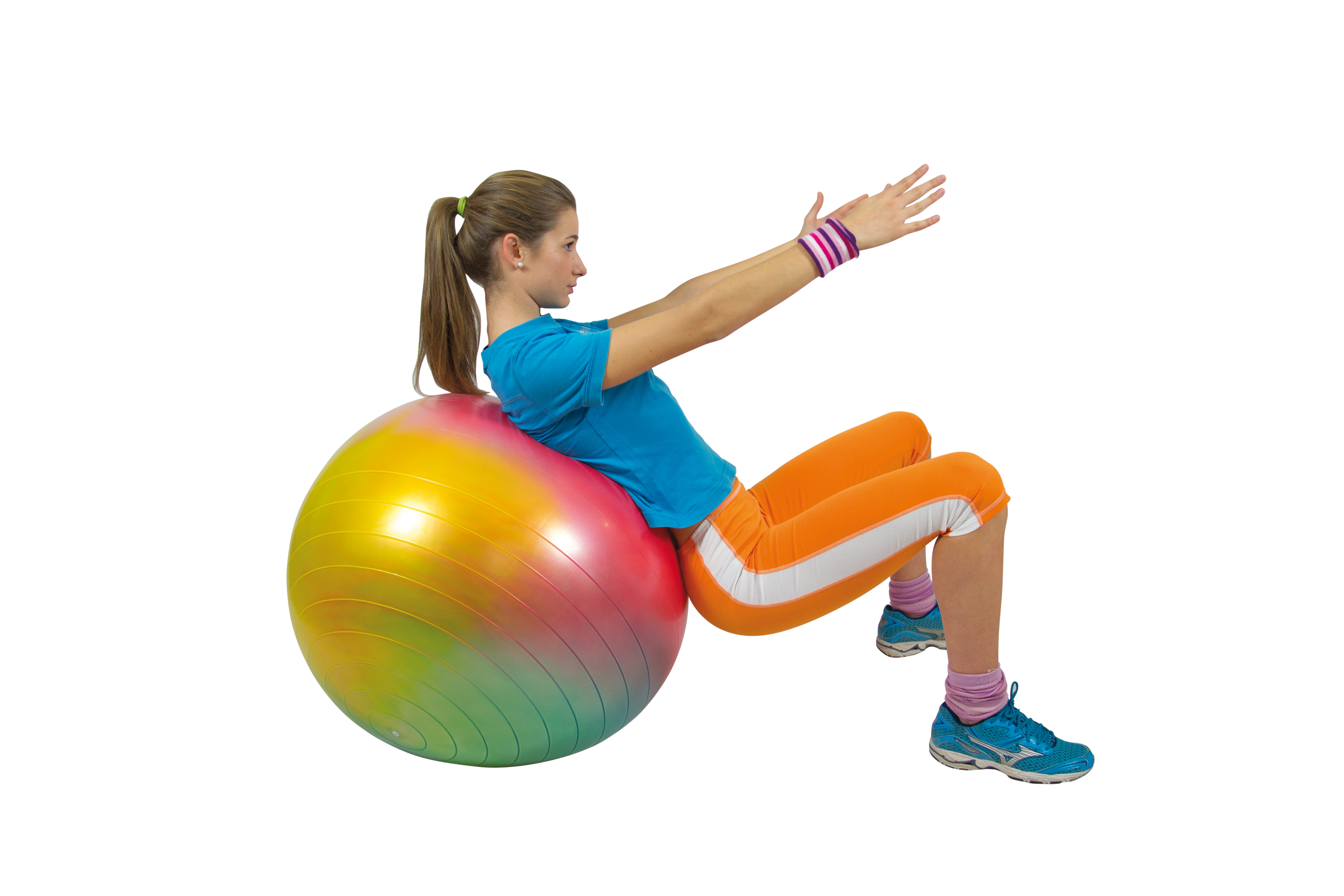 De fitnessbal kan ook worden gebruikt als zitbal. Door actief te zitten wordt de lichaamshouding ondersteund en worden spieren in rug en buik geactiveerd.