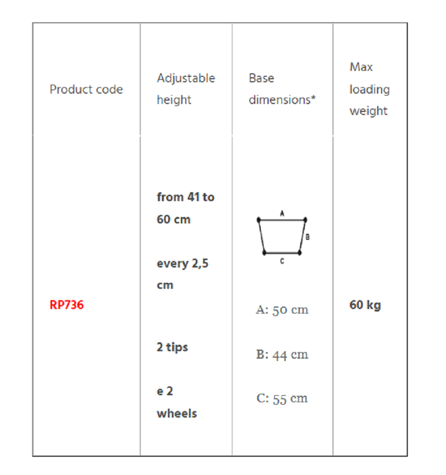 - Breedte van 55 cm aan de voorkant en 50 cm aan de achterkant voor extra stabiliteit.