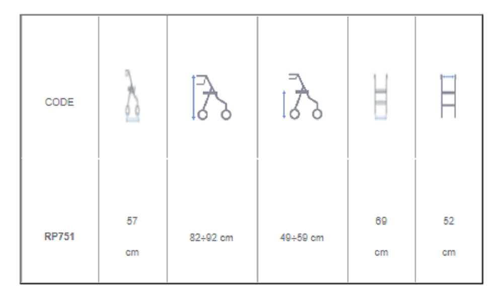 - Opklapbare zitting met een verstelbare hoogte van 49 tot 59 cm.