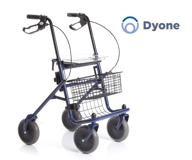 - Zwenkwielen vooraan en vaste wielen achter met dubbele remfunctie.