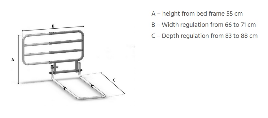 Dit stevige bedhek is gemaakt van geanodiseerd aluminium en biedt zowel veiligheid als ondersteuning tijdens het in en uit bed stappen. Het frame wordt eenvoudig onder het matras geschoven, waardoor het bedhek stevig op zijn plaats blijft.