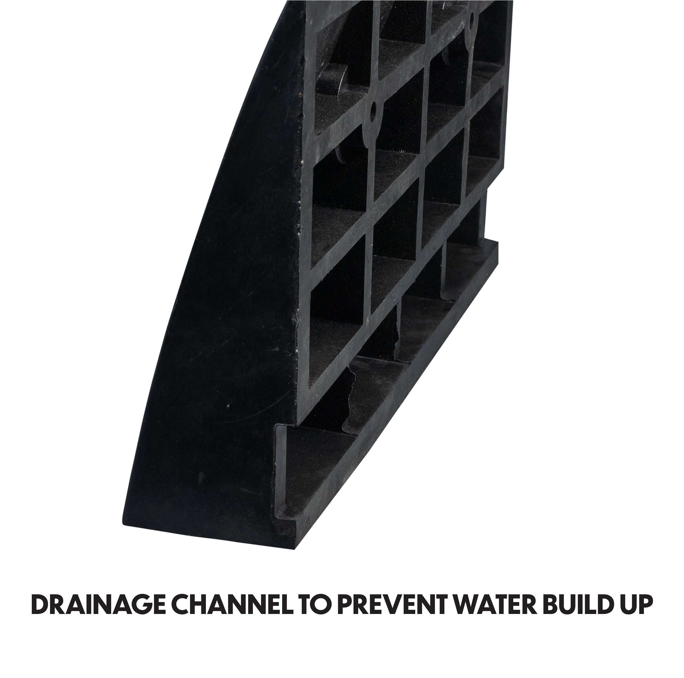 De oprijplaat heeft een gestructureerd oppervlak dat extra grip biedt, waardoor veiligheid en stabiliteit tijdens gebruik gegarandeerd zijn. Het duurzame rubber maakt de oprijplaat weerbestendig en bestand tegen dagelijks gebruik. Hij kan draagbaar worden ingezet of, indien gewenst, permanent worden bevestigd.