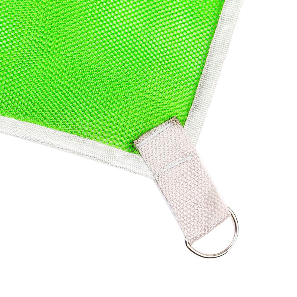 Elke hoek heeft een ring waarmee het laken met stokken in de grond kan worden bevestigd.