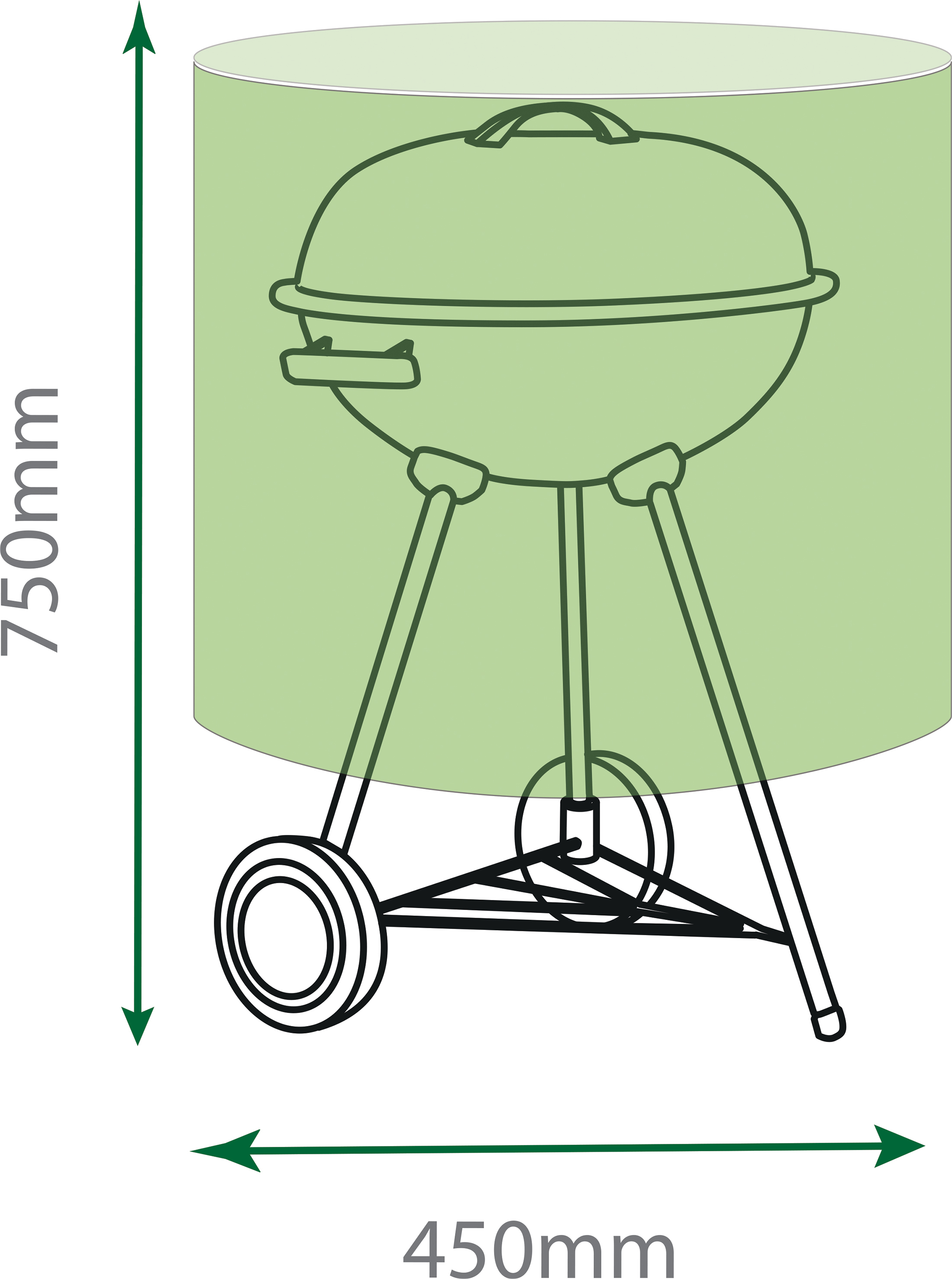 De hoes is gemaakt van stevig, waterbestendig polyethyleen en is voorzien van metalen oogjes met een nylon koord voor een goede pasvorm. De groene kleur zorgt ervoor dat de hoes subtiel opgaat in de omgeving. Dankzij de compacte maat is deze hoes geschikt voor kleine barbecues en ketelmodellen.