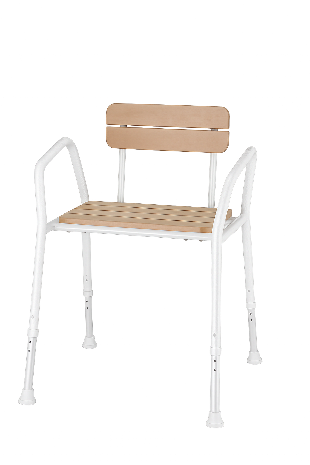 Douchestoel met rugleuning – verstelbaar en houtlook design