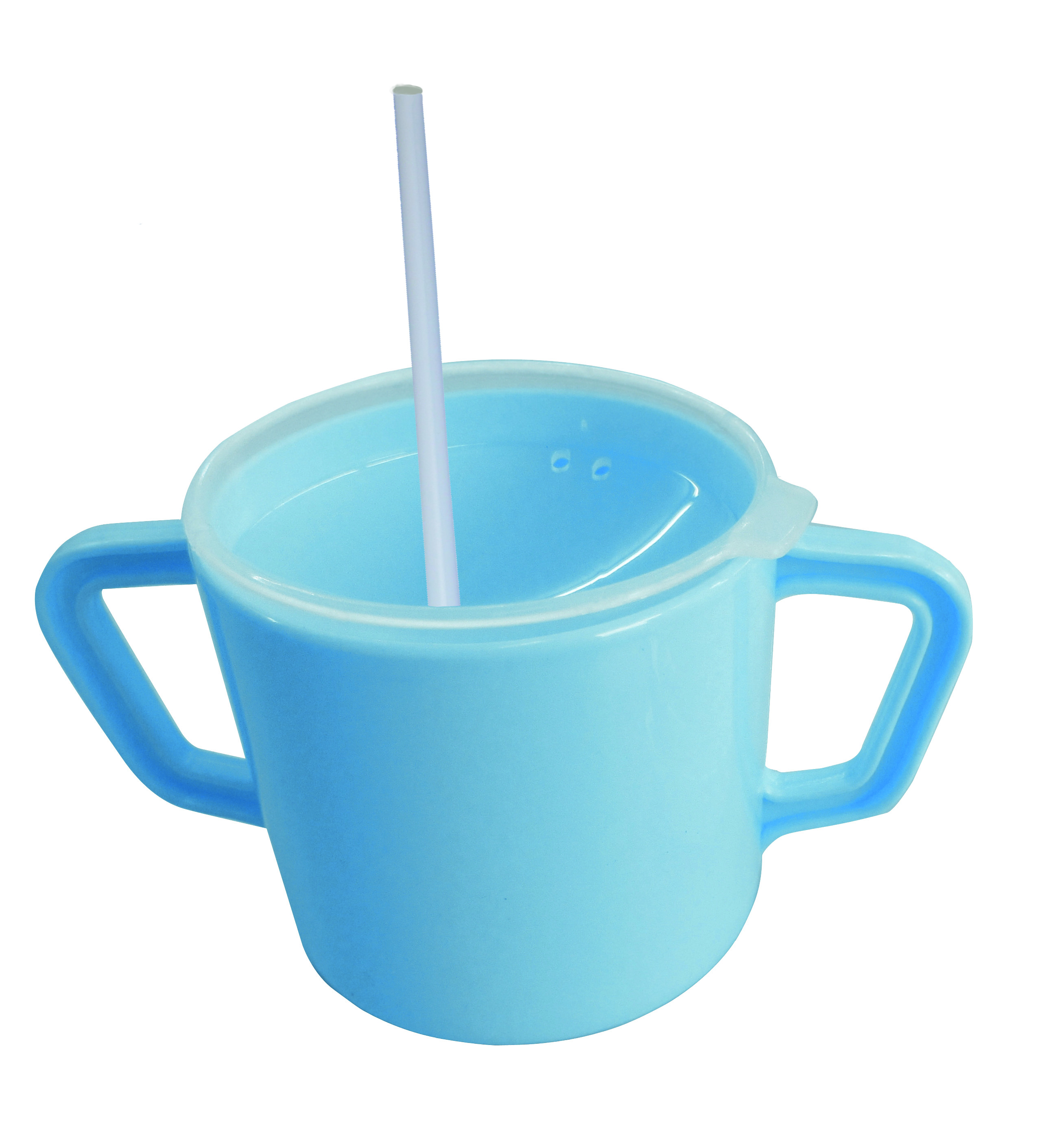 Deze praktische drinkbeker met twee handgrepen biedt extra houvast en controle tijdens het drinken. Ideaal voor mensen die ondersteuning nodig hebben bij het zelfstandig drinken.