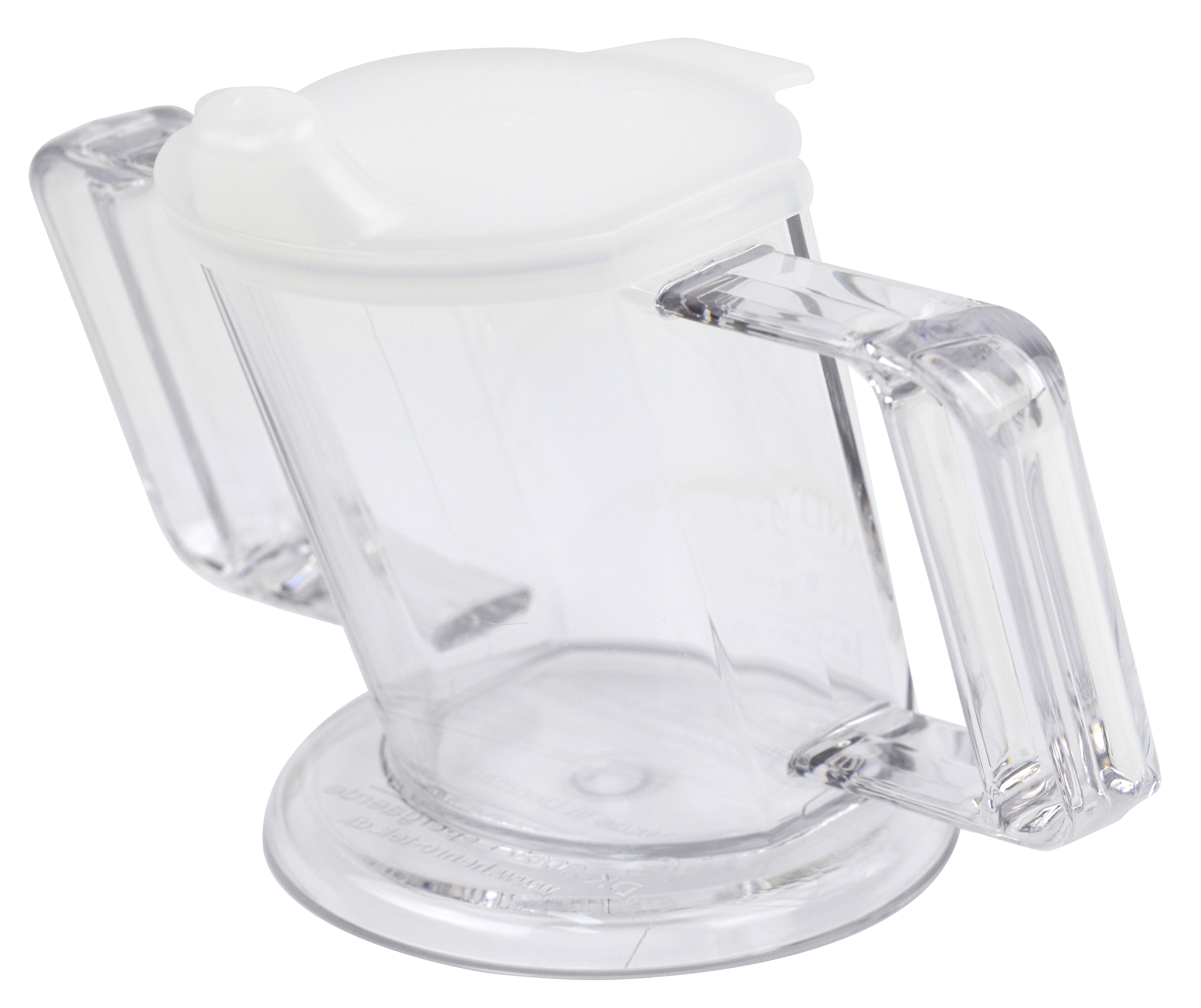 De beker is voorzien van twee stevige handgrepen die optimale grip en controle bieden, ook voor mensen met verminderde handfunctie of kracht. Met een inhoud van circa 200 ml is de beker geschikt voor warme en koude dranken.