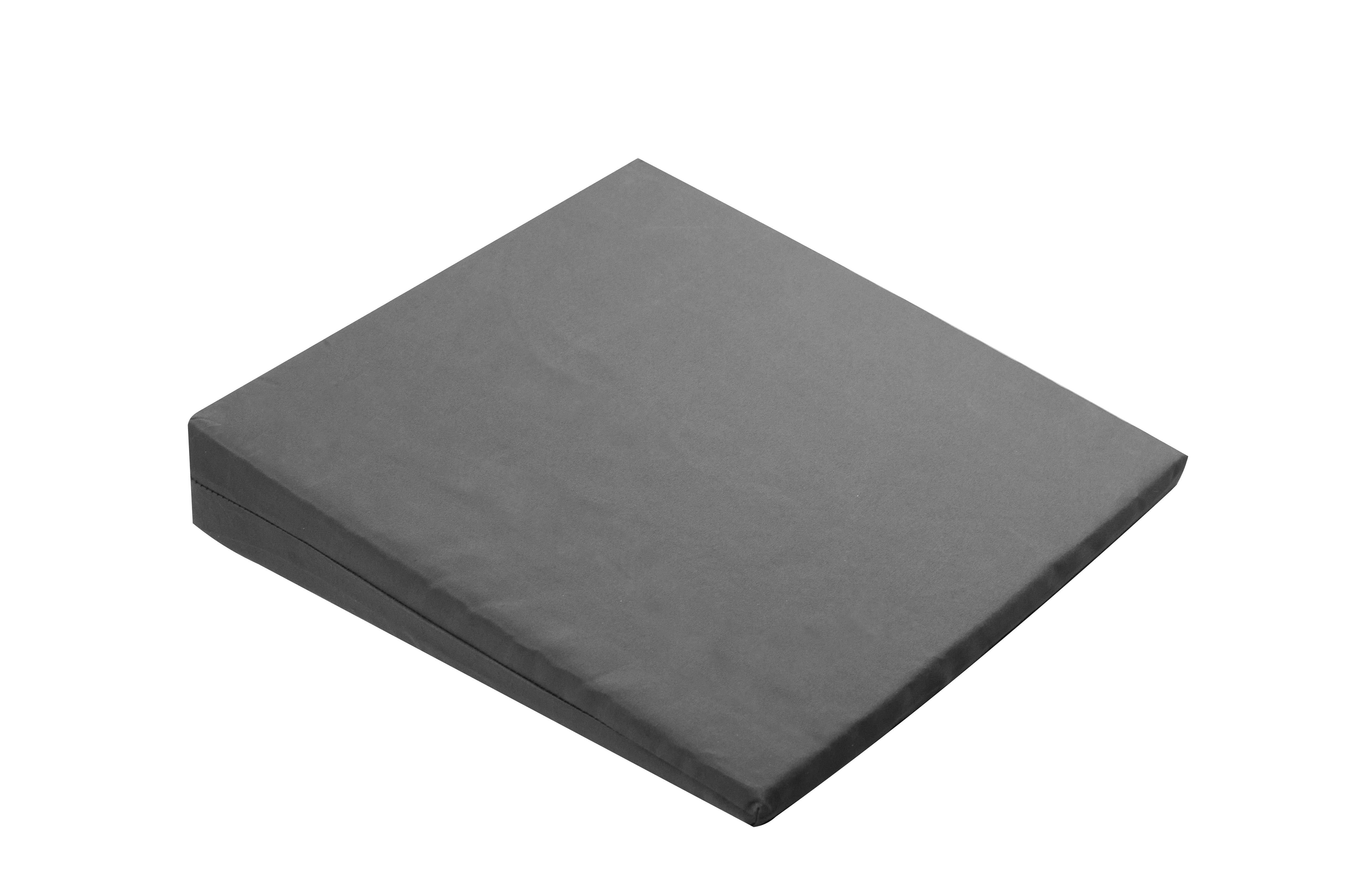 Dit wigkussen is gemaakt van samengesteld schuim en heeft een schuine vorm. Het kussen heeft een afmeting van circa 37 x 37 x 7/2 cm.