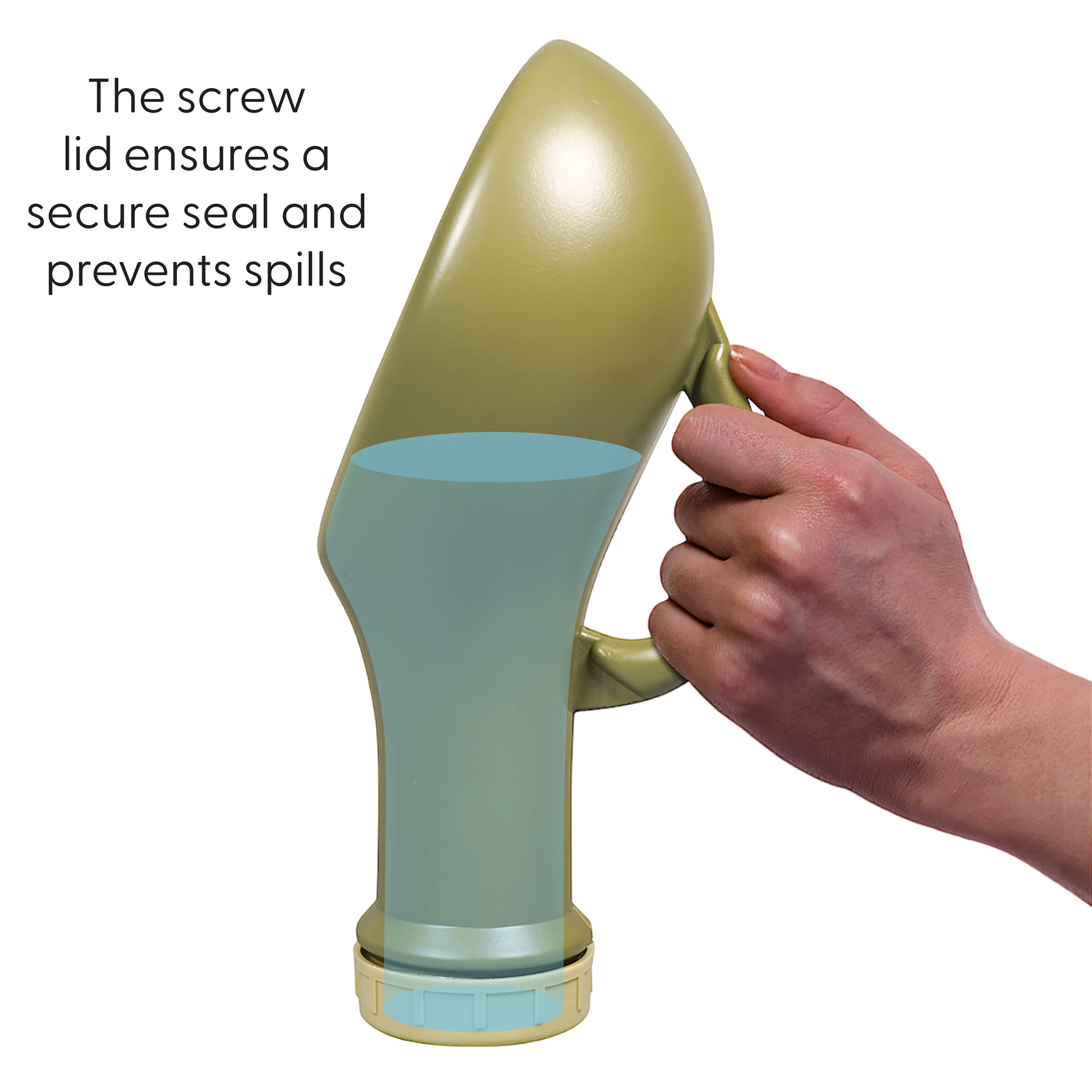 Het urinaal heeft een ruime draagbeugel, waardoor het gemakkelijk mee te nemen en te verplaatsen is. Dit maakt het niet alleen handig voor onderweg, maar ook ideaal om in de slaapkamer te bewaren wanneer de badkamer zich op een andere verdieping bevindt.