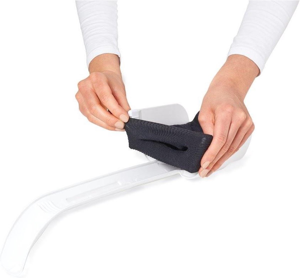 Sok aantrekhulp. De kunststof aantrekhulp is geschikt voor het aantrekken van sokken en kousen.