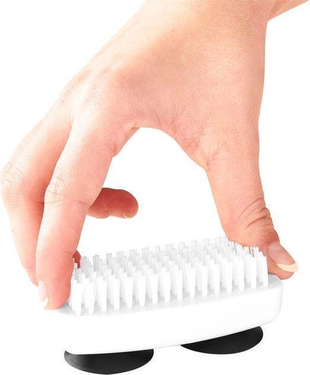 De nagelborstel is eenvoudig schoon te maken en hecht goed op gladde oppervlakken zoals wastafels of tegels. De stevige borstelharen zorgen voor een grondige reiniging, terwijl het compacte formaat ervoor zorgt dat de borstel weinig ruimte inneemt.
